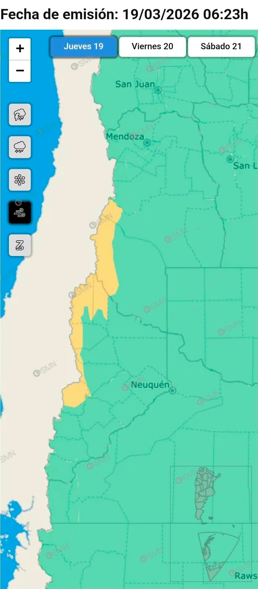🟨 45-70 km/h con ráfagas ≥ 90 km/h