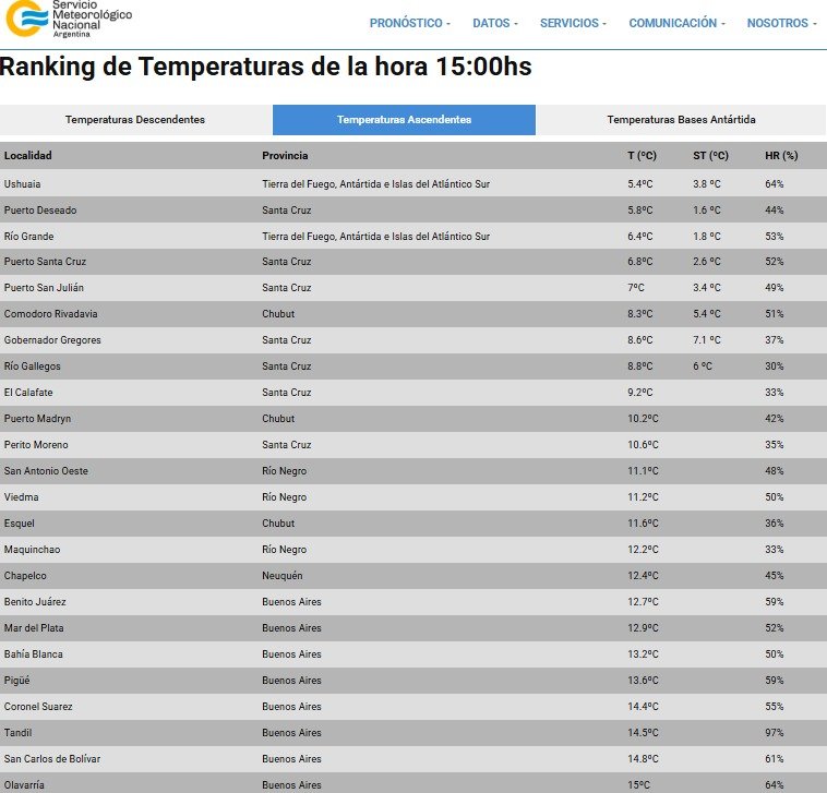 23 SEP | En este momento, las temperaturas en Patagonia y en el centro del país no superan los 15 °C por el ingreso de aire frio y la prese…