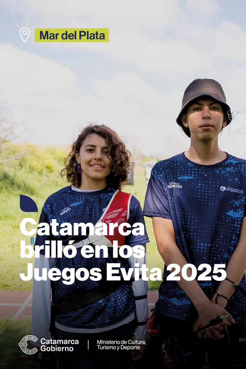 Orgullo catamarqueño en cada competencia 🏅 🤸Nuestros jóvenes deportistas cerraron una participación inolvidable en los Juegos Evita 2025, demostrando talento, compromiso y un enorme espíritu de equipo. 🏆 Participaciones destacadas: * Skate: Lionel Mamani y Sofía Campos de Santa María. 💪🏼 Catamarca sigue creciendo a través del deporte. ¡Felicitaciones a todos! Ministerio de Cultura, Turismo … Leer más