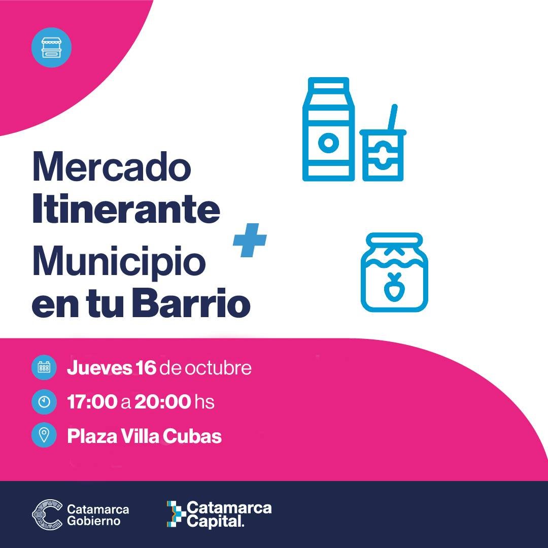 🛒 El Mercado Itinerante y Municipio en tu Barrio llega a Villa Cubas 🍎Una oportunidad para disfrutar de productos frescos, conocer a nuestros emprendedores locales y resolver trámites cerca de casa. ¡Los esperamos! #HacemosCatamarca ———————————————– Todos los días InfoMunicipios publica en su portal las noticias más importantes de 2900 municipalidades y comunas de toda la … Leer más