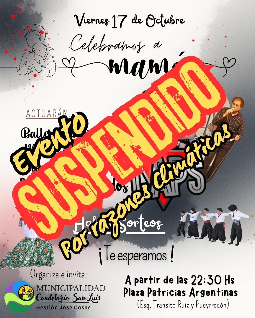 Debido a las condiciones climáticas , informamos que el evento “Celebramos a Mamá” programado para esta noche ha sido SUSPENDIDO….