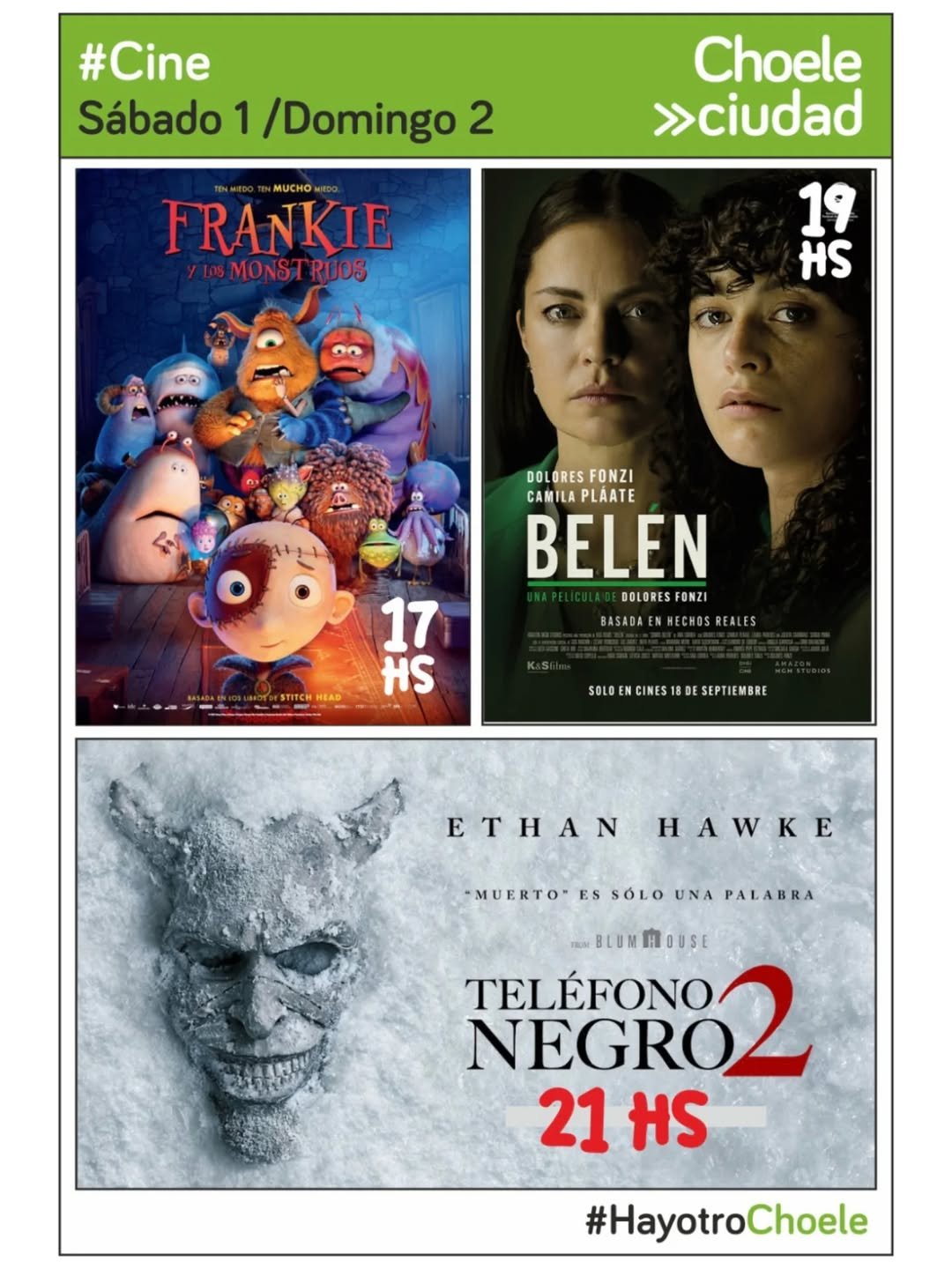 Este finde hay cine! Sábado 1 y Domingo 2 de noviembre. Frankie y los monstruos. 17 horas. Belén 19 horas Teléfono negro 2 21 horas. Entradas en puerta. ———————————————– Todos los días InfoMunicipios publica en su portal las noticias más importantes de 2900 municipalidades y comunas de toda la nación. Además enviamos a nuestros más … Leer más
