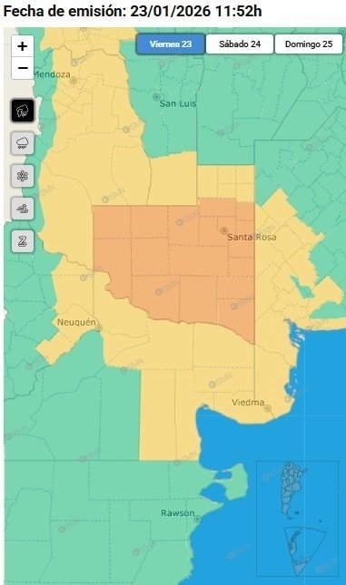 23 ENE I ⚠️ actualización #Alertas: 👉🏼Se eleva el alerta naranja en varias localidades de La Pampa ⛈️Tormentas aisladas ⚠️Lluvias intensas 🟧 40-70 mm con ráfagas ≥ 90 km/h 🧊 Granizo +info 👉🏼 www.smn.gob.ar/alertas #CLIMA https://municipios.info/wp-content/uploads/2026/01/23-ENE-I-actualizacion-Alertas.jpg ———————————————– Todos los días InfoMunicipios publica en su portal las noticias más importantes de 2900 municipalidades y comunas de … Leer más