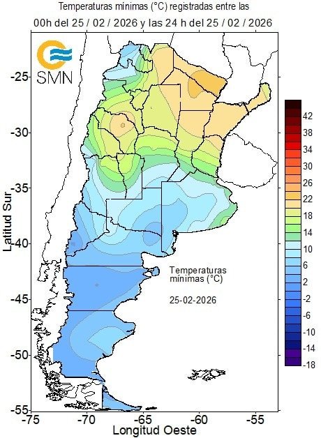 25 FEB I ❄️Esta mañana, varias ciudades del centro y sur del país registraron Tmín < a 12 °C.
