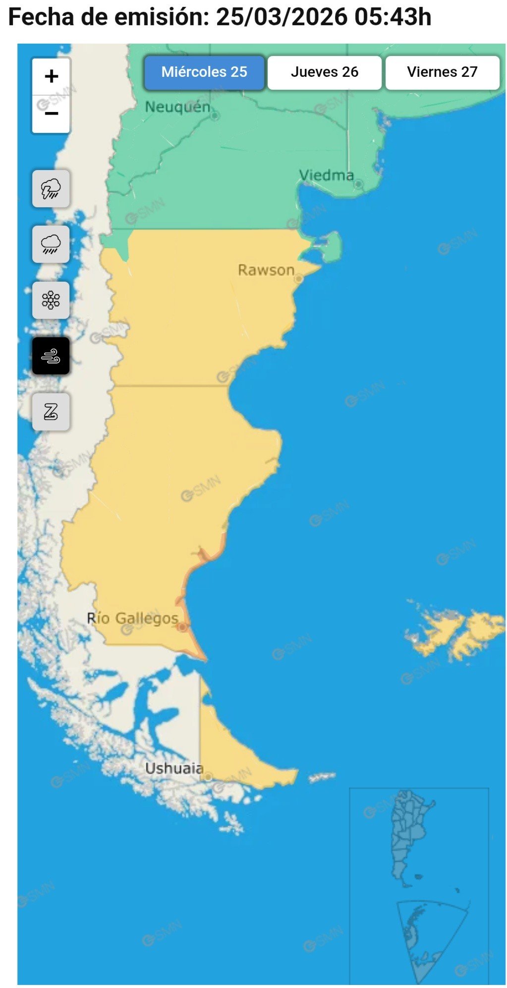 🟧45-65 km/h con ráfagas ≥ 120 km/h