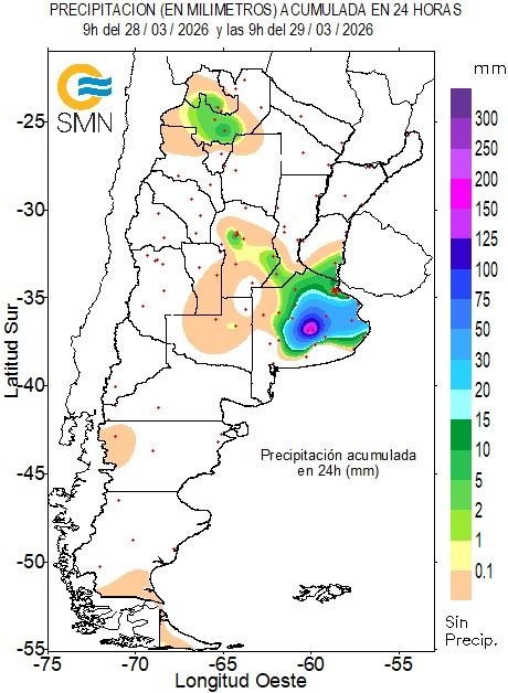 29 MAR | 🌧️ La zona más afectada por las lluvias fue el centro de Buenos Aires. Ciudades como Azul y Olavarría superaron, en menos de 24 h, los valores medios de precipitación para el mes de marzo.