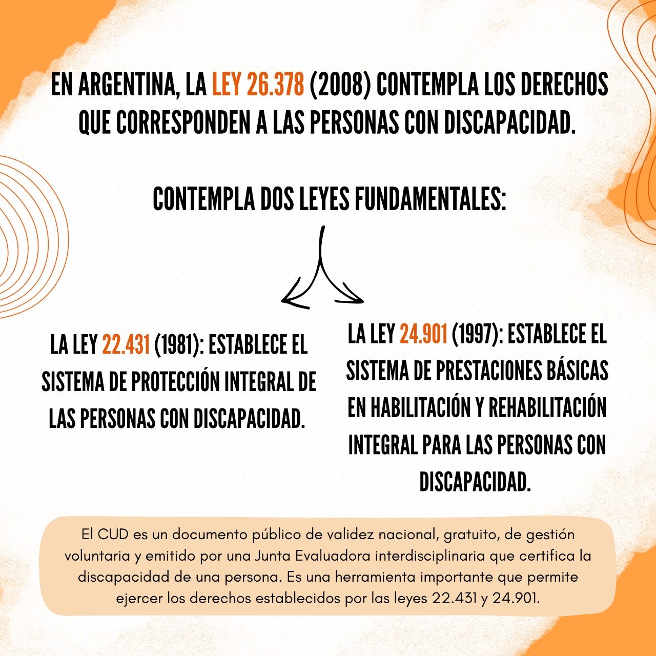 En Argentina, estos derechos se respaldan en leyes como la Ley 22.431, la Ley 24.901 y la Ley 26.378, que incorpora la Convención Internacional.