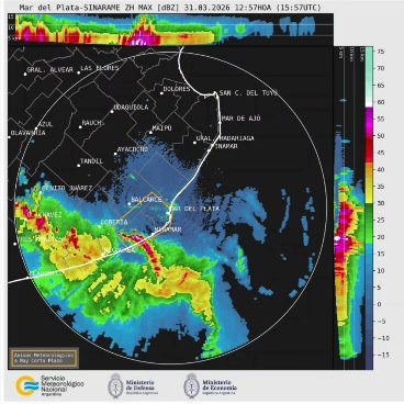 31 MAR | 13:35h ⛈️ Se registran tormentas fuertes en la costa bonaerense.