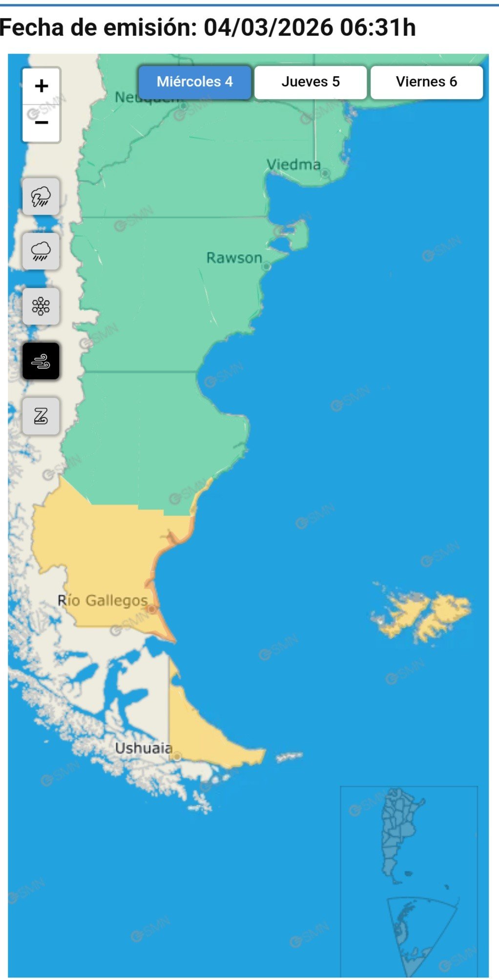 🟧40-65 km/h con ráfagas ≥ 110 km/h