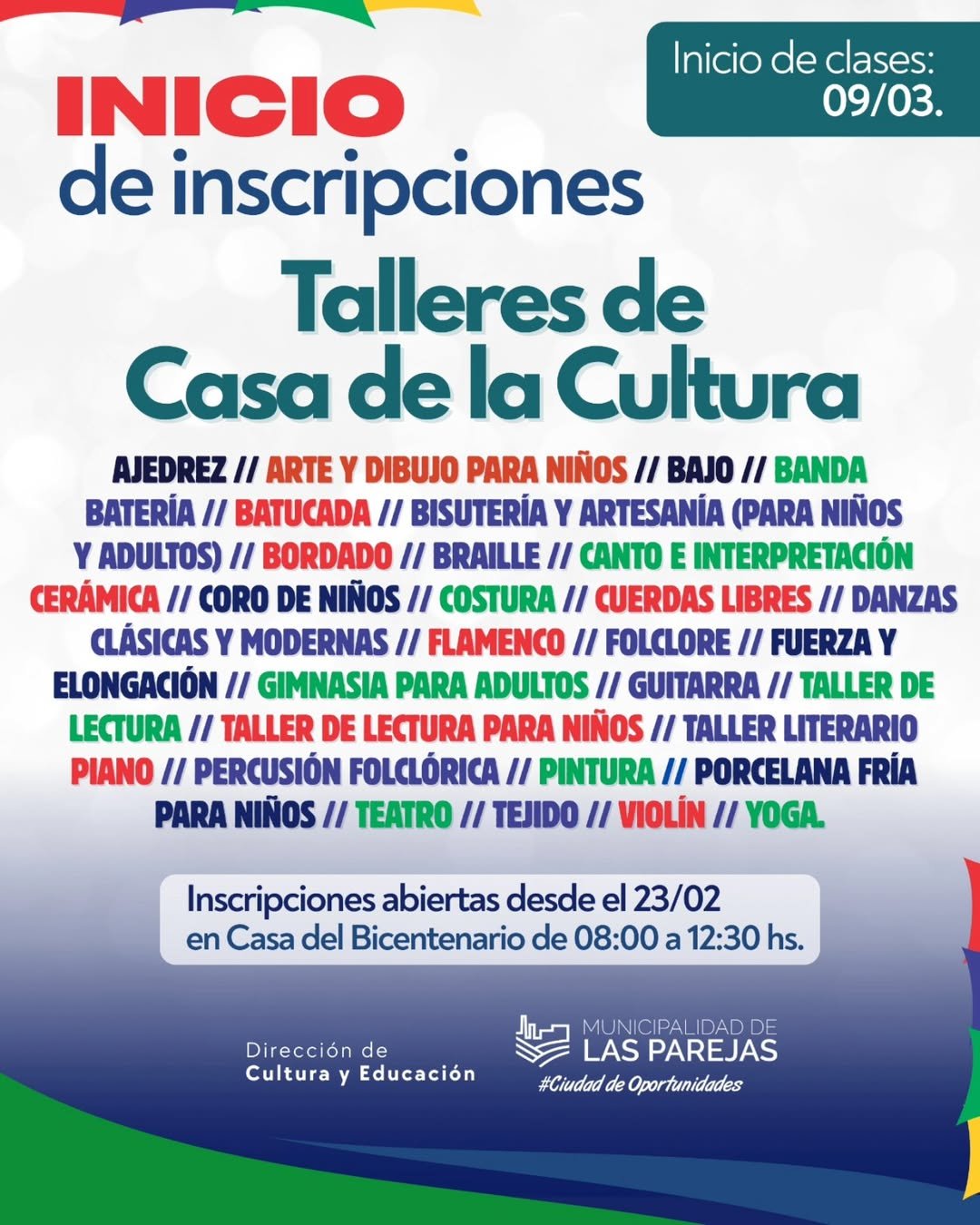 🎨🎶 ¡Abren las inscripciones a los Talleres de la Casa de la Cultura Municipal!