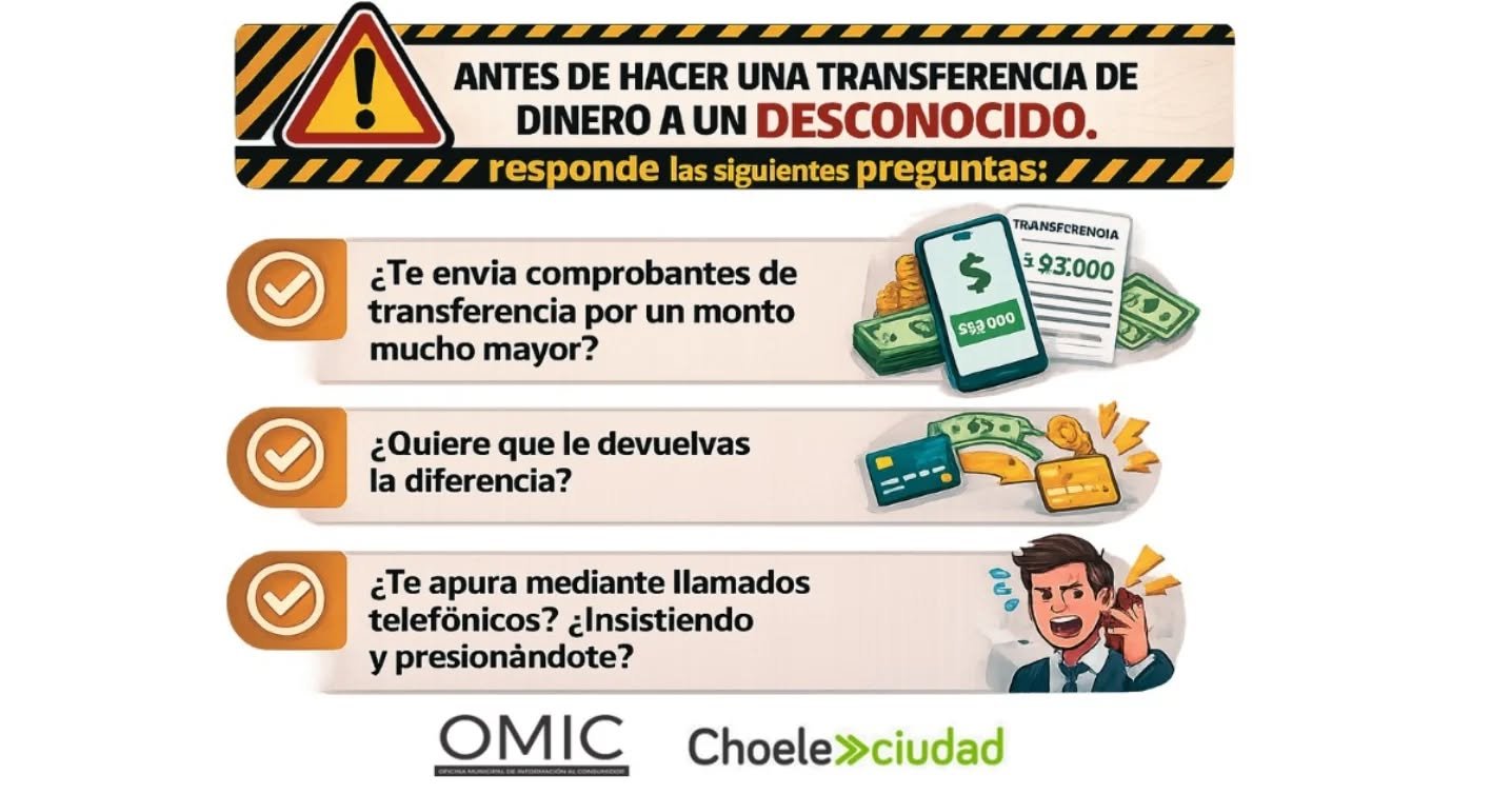Desde la Municipalidad de Choele Choel informamos a la comunidad que estamos recibiendo numerosas consultas de vecinos que han sido contactados por supuestos compradores luego de publicar un producto en venta en redes sociales.