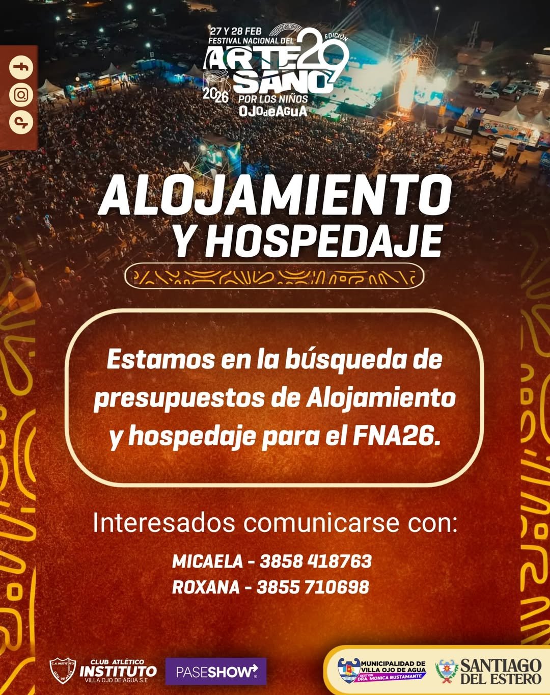 👉 Si tenés alguna vivienda, departamento o habitación para alquilar durante los días del Festival, dirigirse a la Municipalidad o a la Biblioteca Popular “Julio Bustamante” para ser registrado.