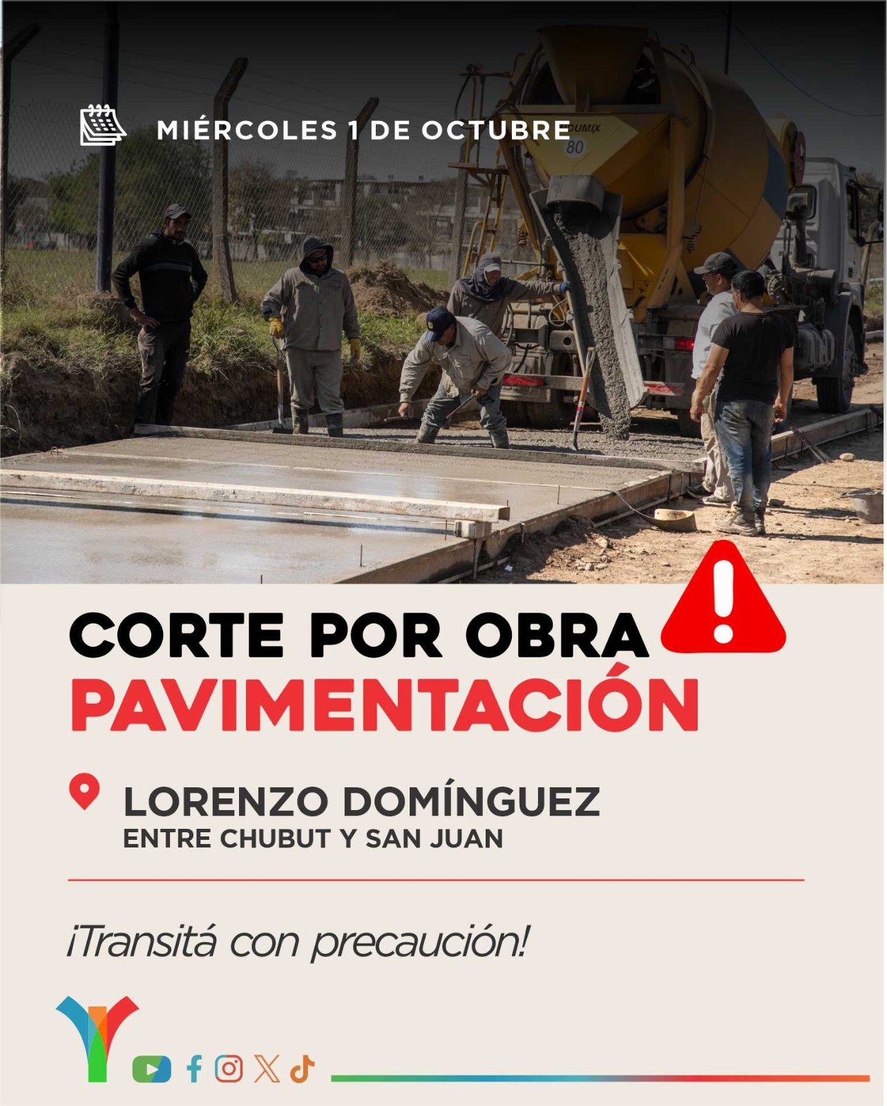 A partir de hoy comienza el corte de calle en Lorenzo Domínguez entre Chubut y San Juan, para continuar con la pavimentación.