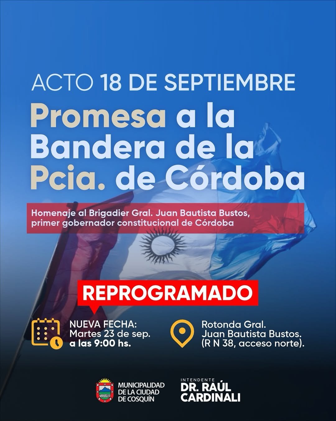 Reprogramamos el Acto de la Promesa de Lealtad a la Bandera de la Provincia de Córdoba. ❤️
