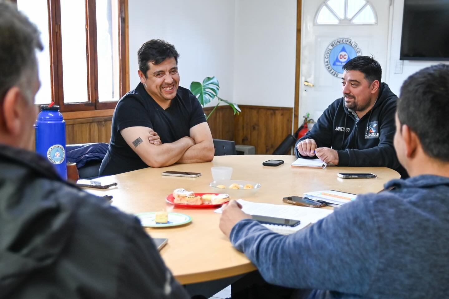 El intendente Daniel Harrington, junto a funcionarios municipales, recibió al flamante presidente Santiago Cappello y al secretario Jorge Silva, en un encuentro donde realizamos un balance del camino recorrido en los últimos años y proyectamos una agenda de trabajo articulada de cara al calendario anual de eventos.