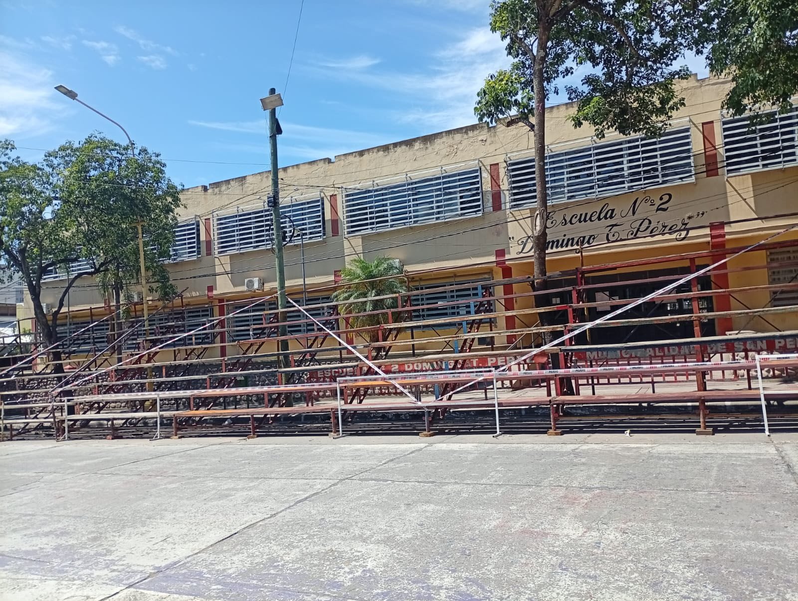 Desde el Taller de Obras Públicas de la Municipalidad de San Pedro de Jujuy se informa que las tribunas no se encuentran habilitadas para su uso, debido a que continúan los trabajos en las tribunas del sector del palco principal.