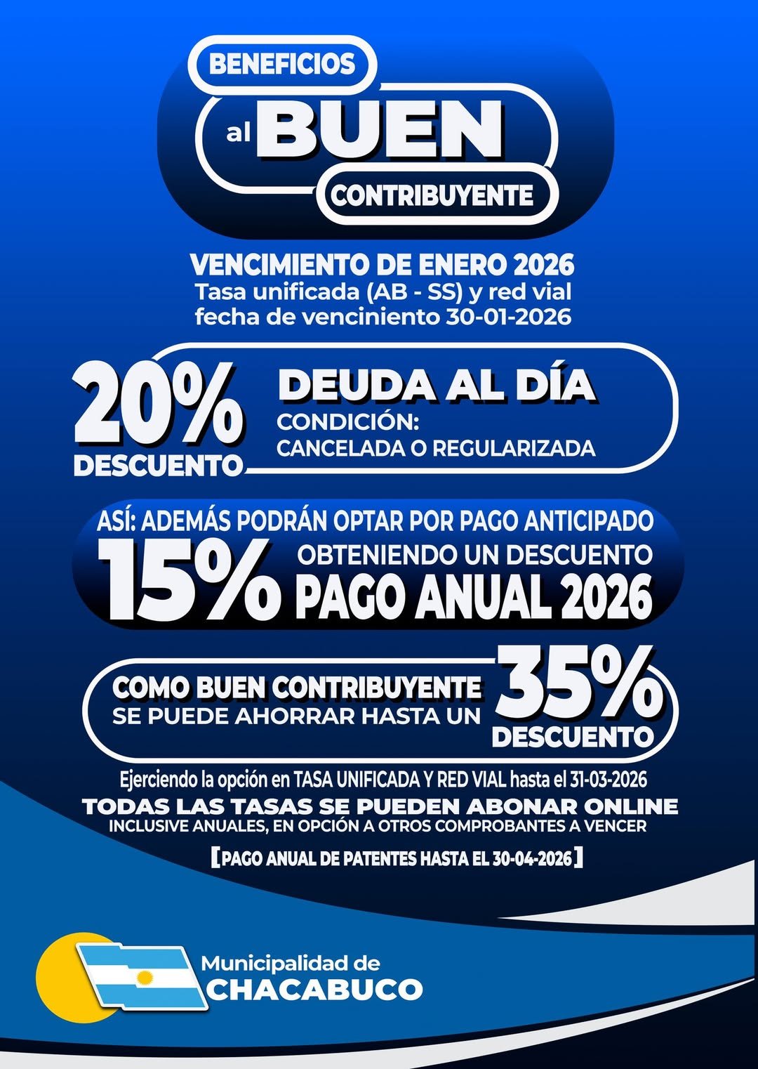 Y como buen contribuyente se puede ahorrar un 35% de descuento, ejerciendo la TASA UNIFICADA y red Vial hasta el 31 de marzo del 2026.
