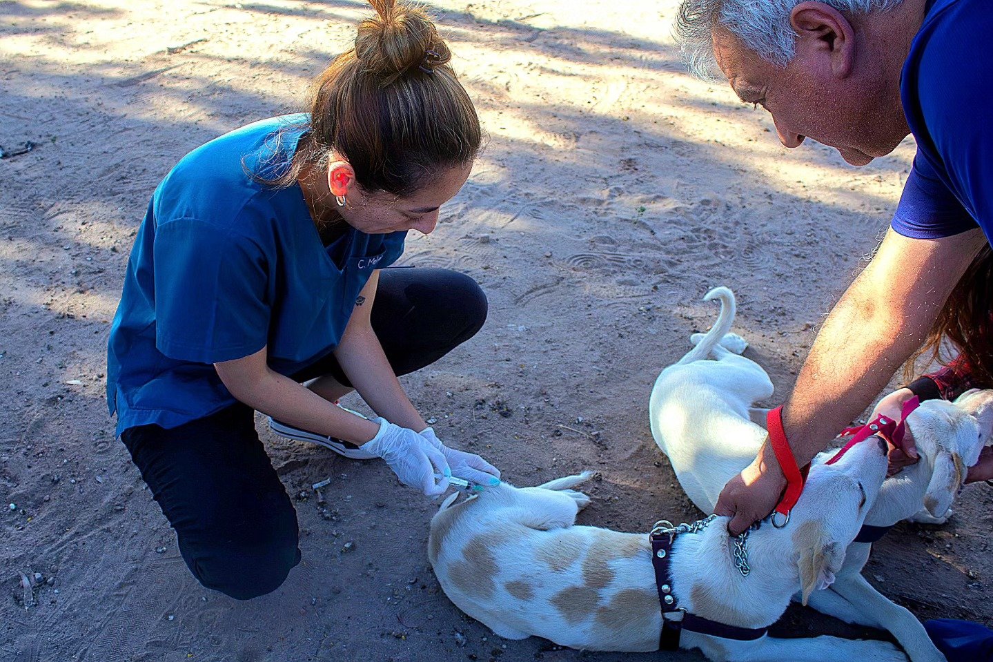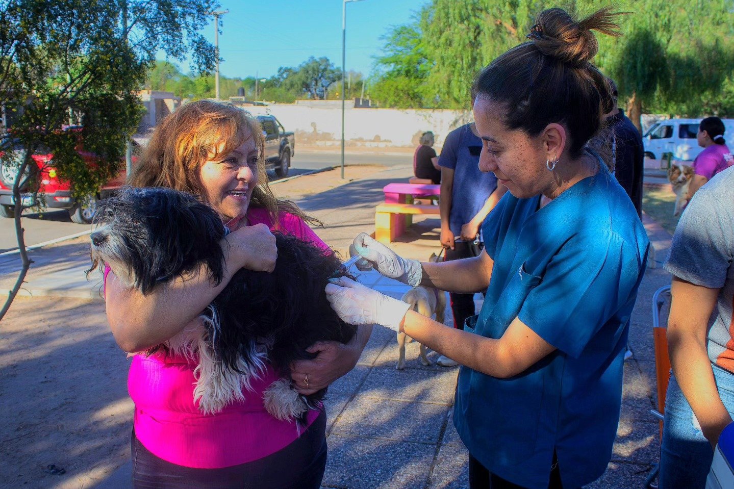 Hoy se llevó a cabo una nueva jornada de la Campaña de Vacunación Antirrábica y Desparasitación en la Plazoleta Eva Perón, junto a la veterinaria Cinthia Melián.