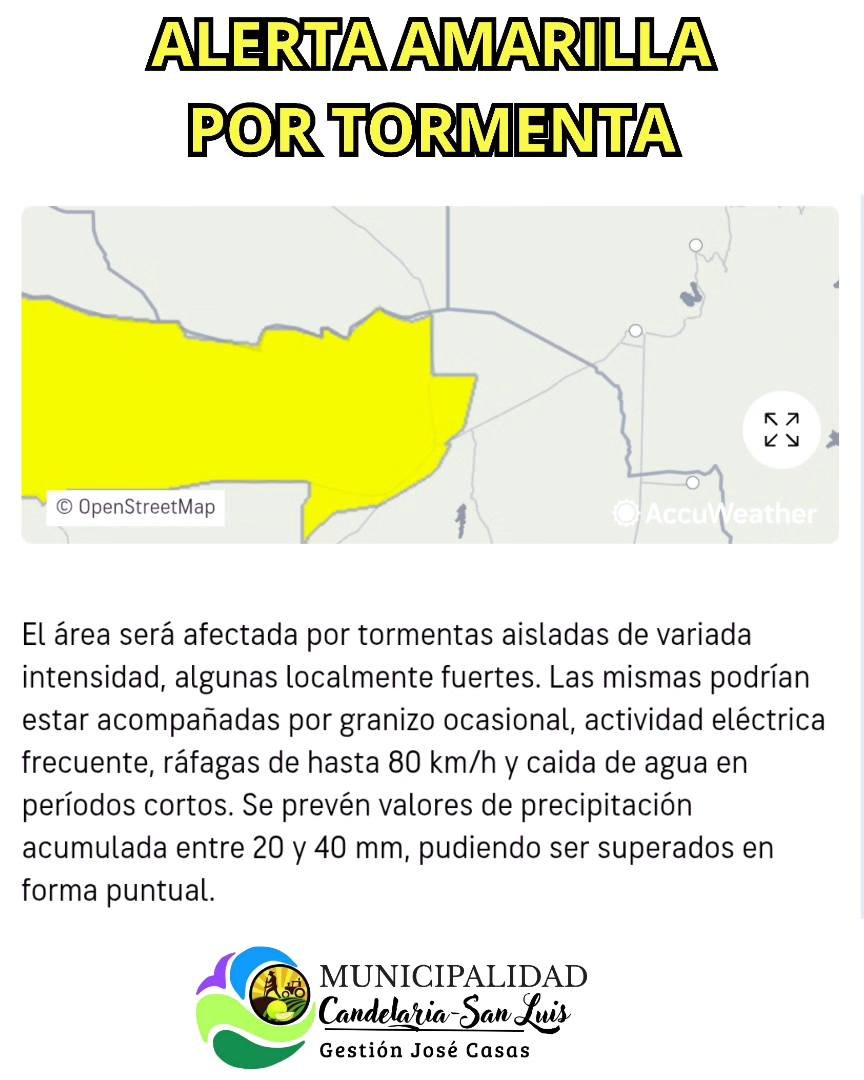 📌Candelaria y todo el departamento Ayacucho se encuentran bajo alerta meteorológica por tormentas aisladas de variada intensidad, algunas localmente fuertes.