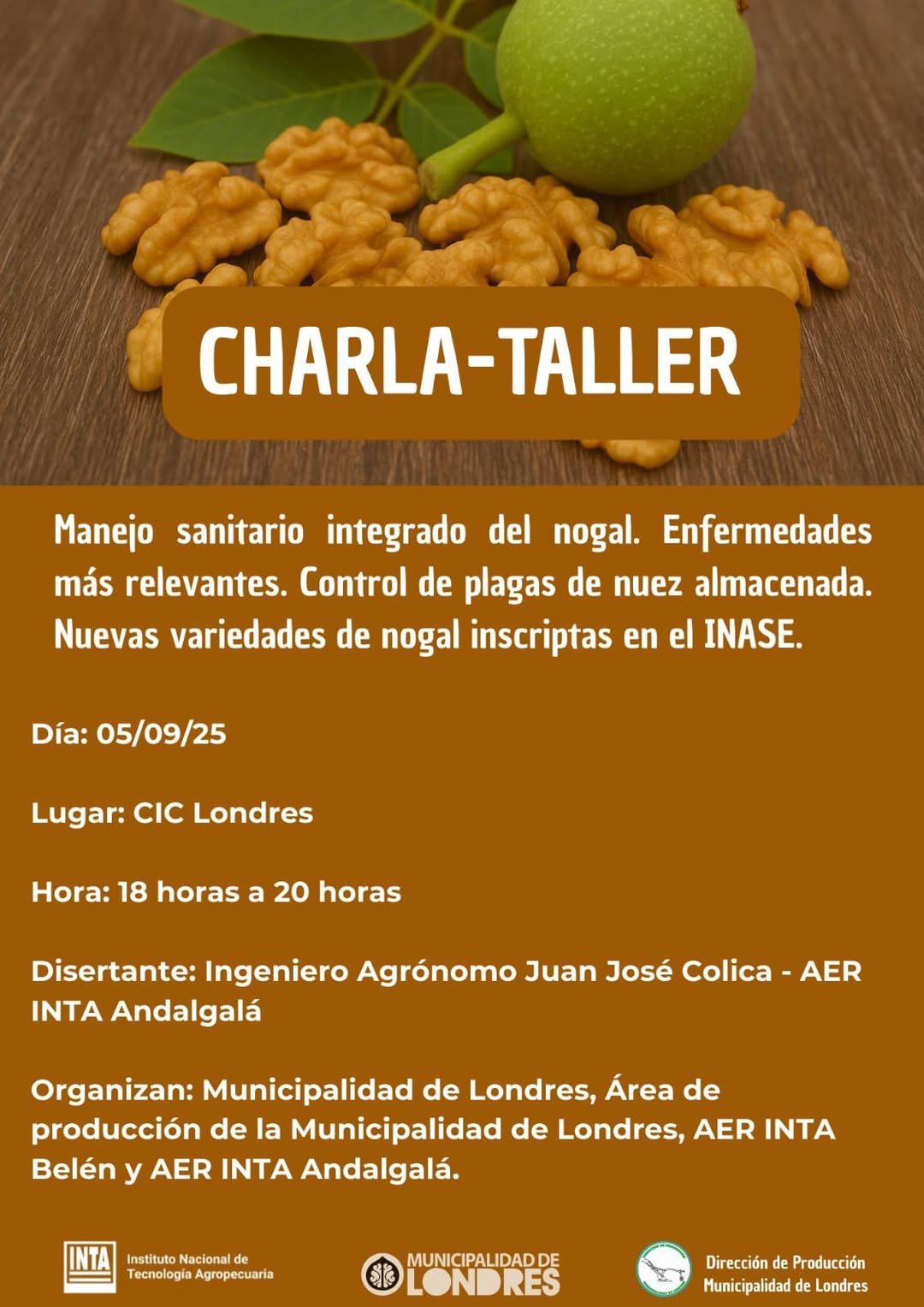 👉 Te invitamos a participar de esta importante charla-taller sobre el manejo sanitario integrado del nogal, donde se abordarán: