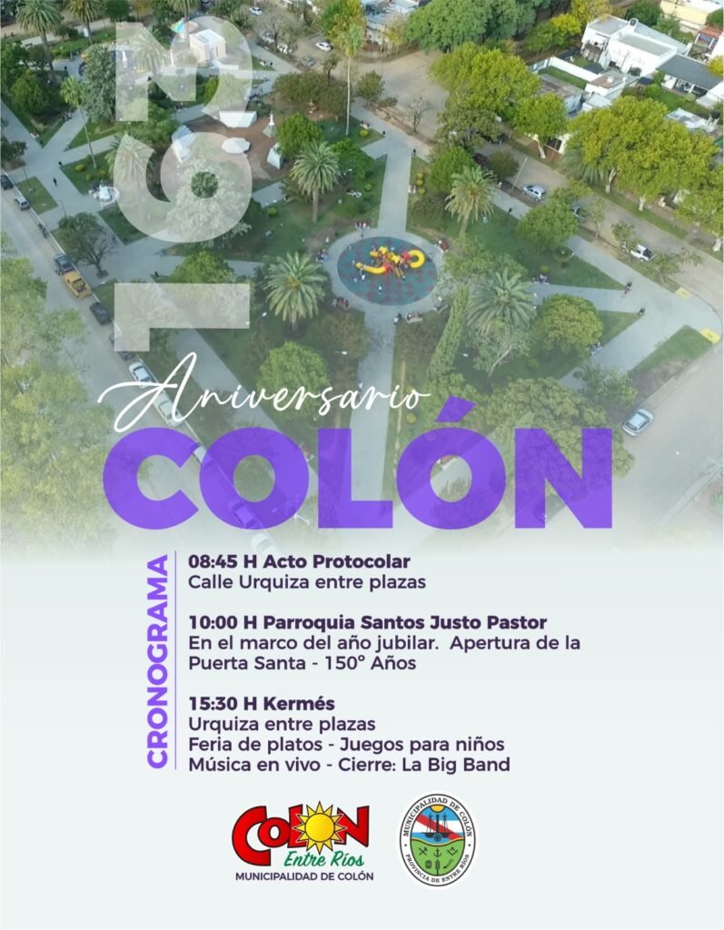 En el marco de esta fecha tan significativa para la comunidad, la Municipalidad de Colón organiza una jornada conmemorativa que busca poner en valor la identidad, la historia y el presente de una ciudad que sigue creciendo con la participación de sus vecinos y el compromiso de sus instituciones.