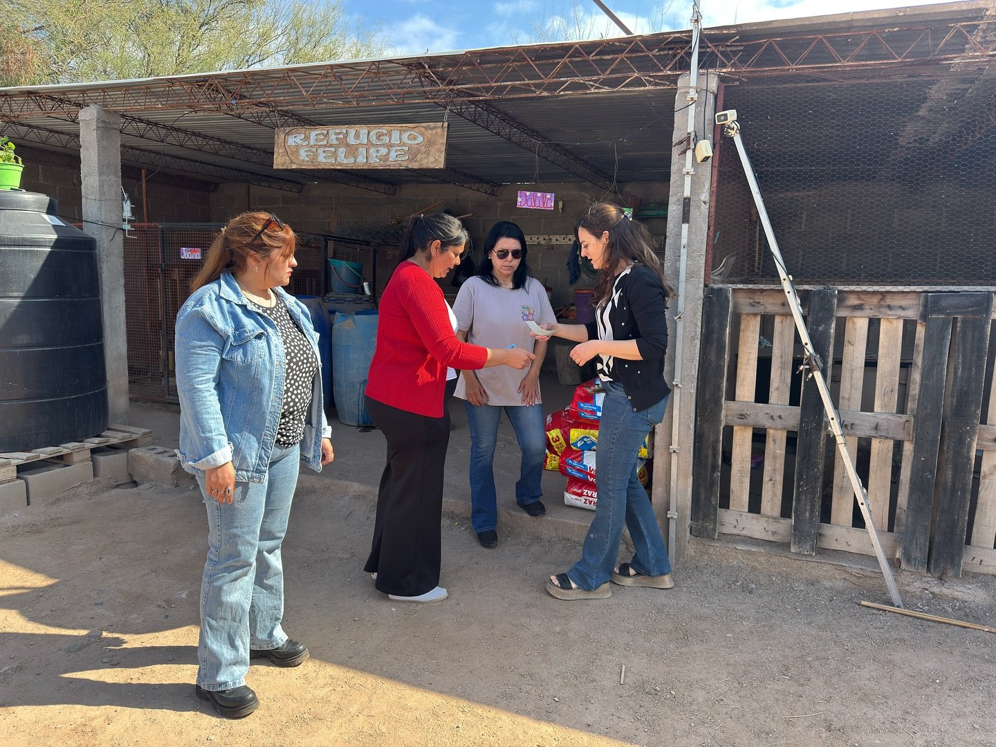El Gobierno Departamental, a través de la Secretaría de Salud —a cargo de Yuliana López— y el Área de Cuidado Responsable de Mascotas, junto con la Secretaría de Hacienda, representada por la Directora de Rentas, Noelia Busto, realizó una nueva entrega de asistencia económica y bolsas de alimento balanceado al refugio de animales de la Asociación Amigos del Animal. Estos fondos estarán destinados a solventar castraciones y reforzar el cuidado de los animales.