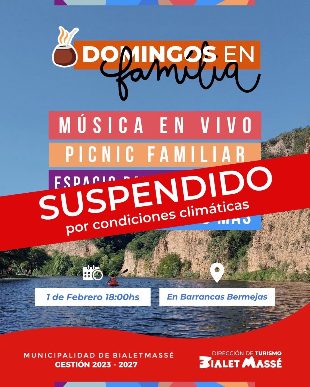 ‼️ Comunicamos que se suspende la jornada de Domingos en Familia por razones climáticas.