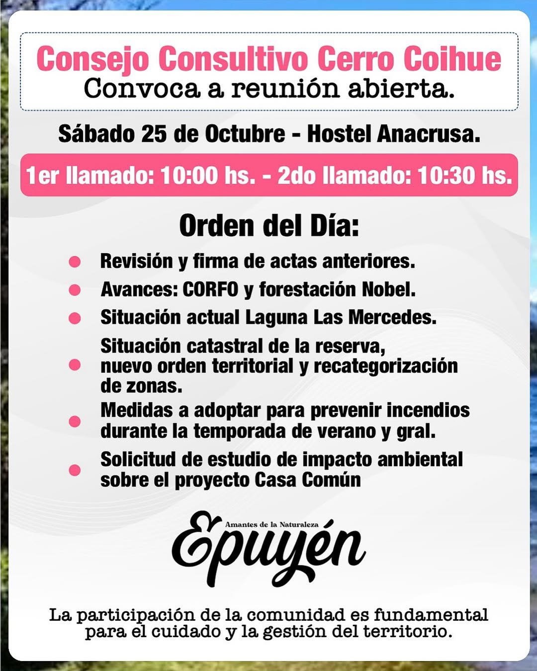 🏔️ Convocatoria a Reunión del Consejo Consultivo del Cerro Coihue
