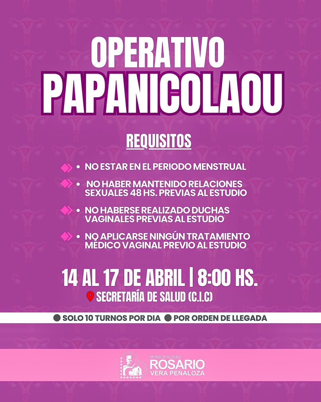 Desde el próximo martes 14 hasta el viernes 17 de abril se realizará un operativo de Papanicolaou en la secretaría de salud (C.I.C.), a cargo del Dr. Otti Yaryura.