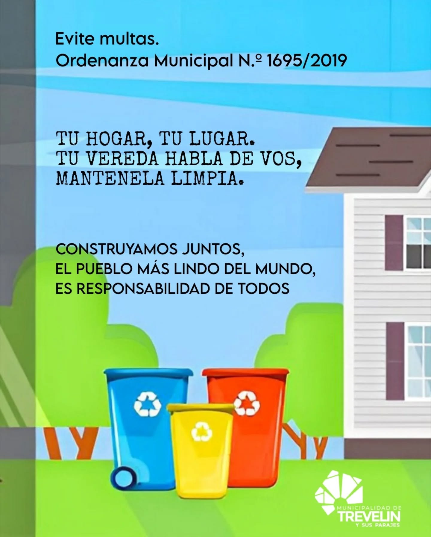Mantener limpio el frente y el patio de tu vivienda no solo mejora la imagen de nuestro pueblo: también habla de vos, de tu compromiso y de cómo elegís convivir con tus vecinos.