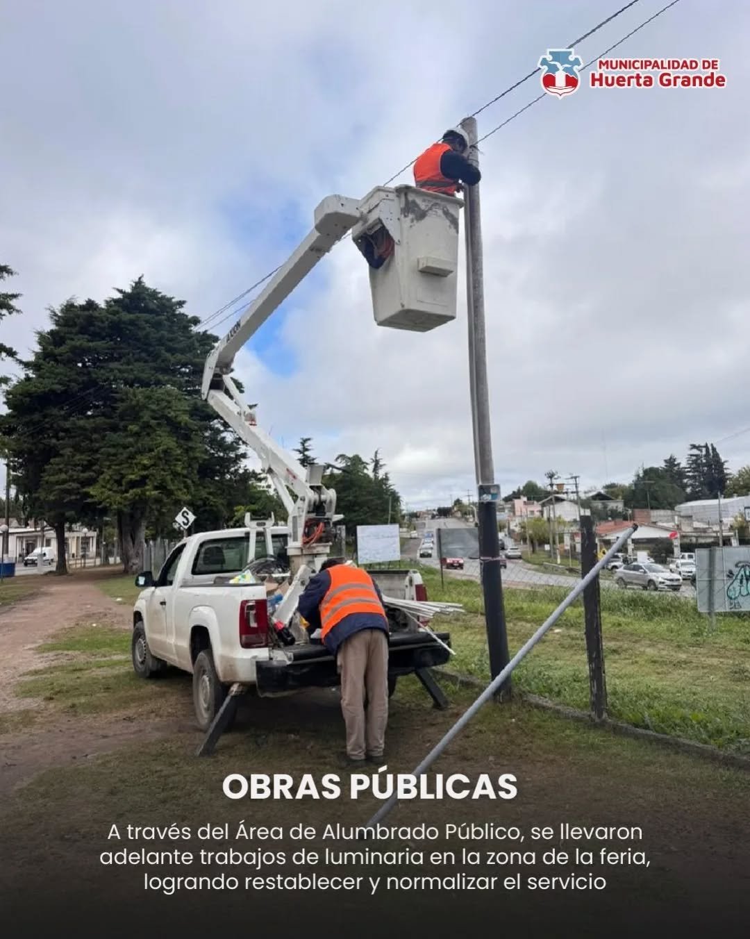 👉🏼Desde la Municipalidad de Huerta Grande informamos que, a través del área de Alumbrado Público, se llevaron adelante trabajos de luminaria en la zona de la feria, logrando restablecer y normalizar el servicio.