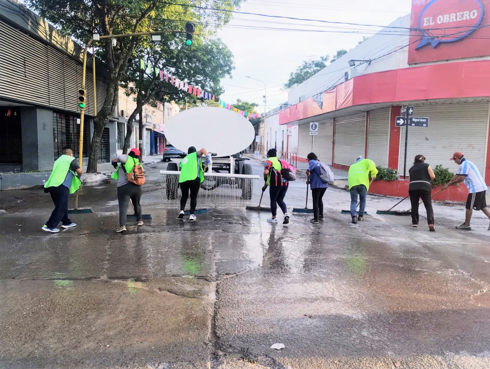🎭 Tras una nueva y multitudinaria noche de corsos, San Pedro de Jujuy vuelve a ponerse en marcha desde muy temprano. Las cuadrillas municipales realizaron tareas intensivas de barrido, limpieza y desinfección del espacio público.