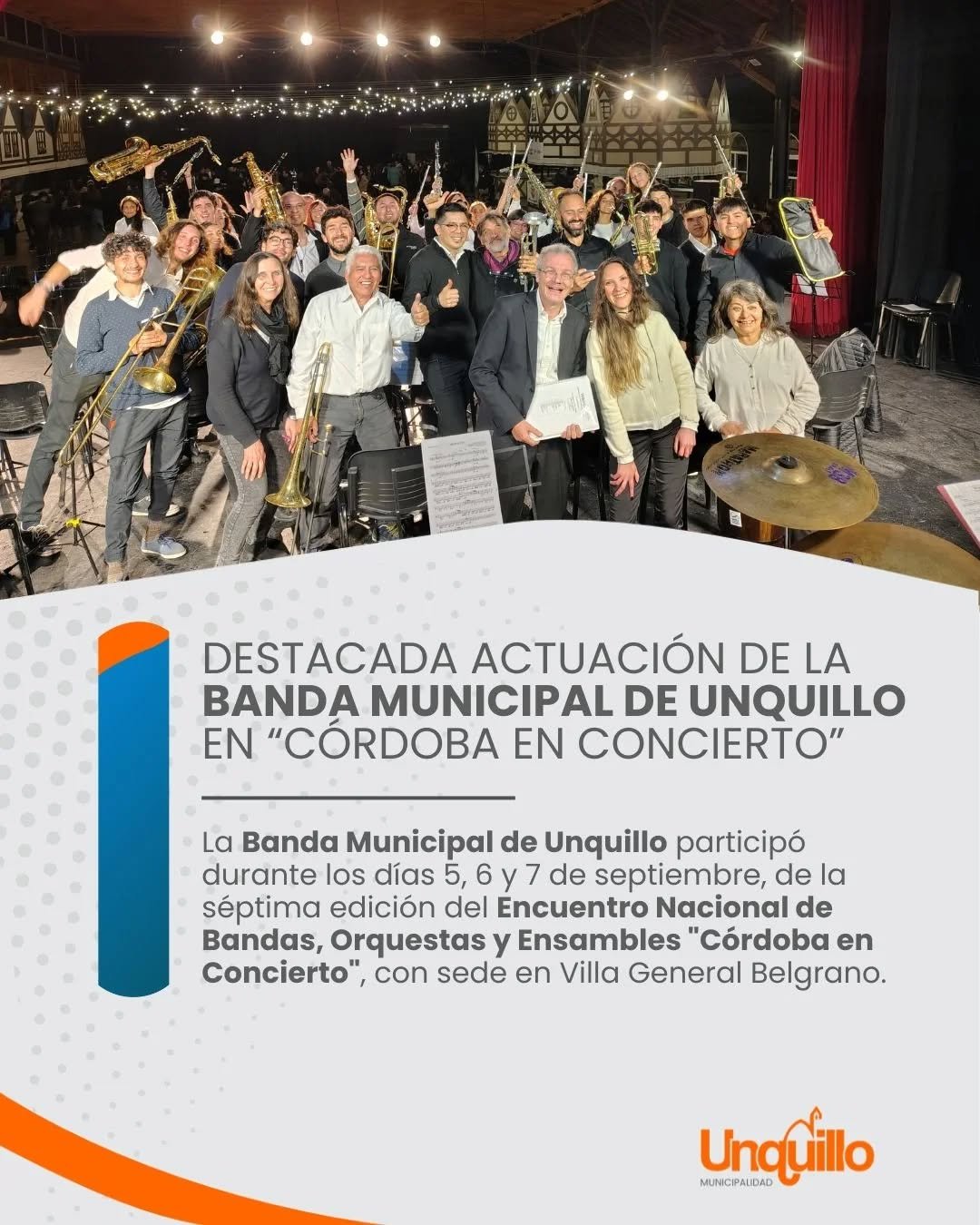 🪈🎺La Banda Municipal de Unquillo participó durante los días 5, 6 y 7 de septiembre, de la séptima edición del Encuentro Nacional de Bandas, Orquestas y Ensambles “Córdoba en Concierto”.