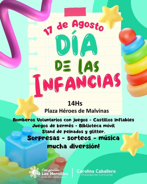 Desde la Comuna de Los Hornillos, invitamos a que juntos celebremos el Día de las Infancias, esperamos a todos los pequeños de nuestra Localidad con sus Familias.