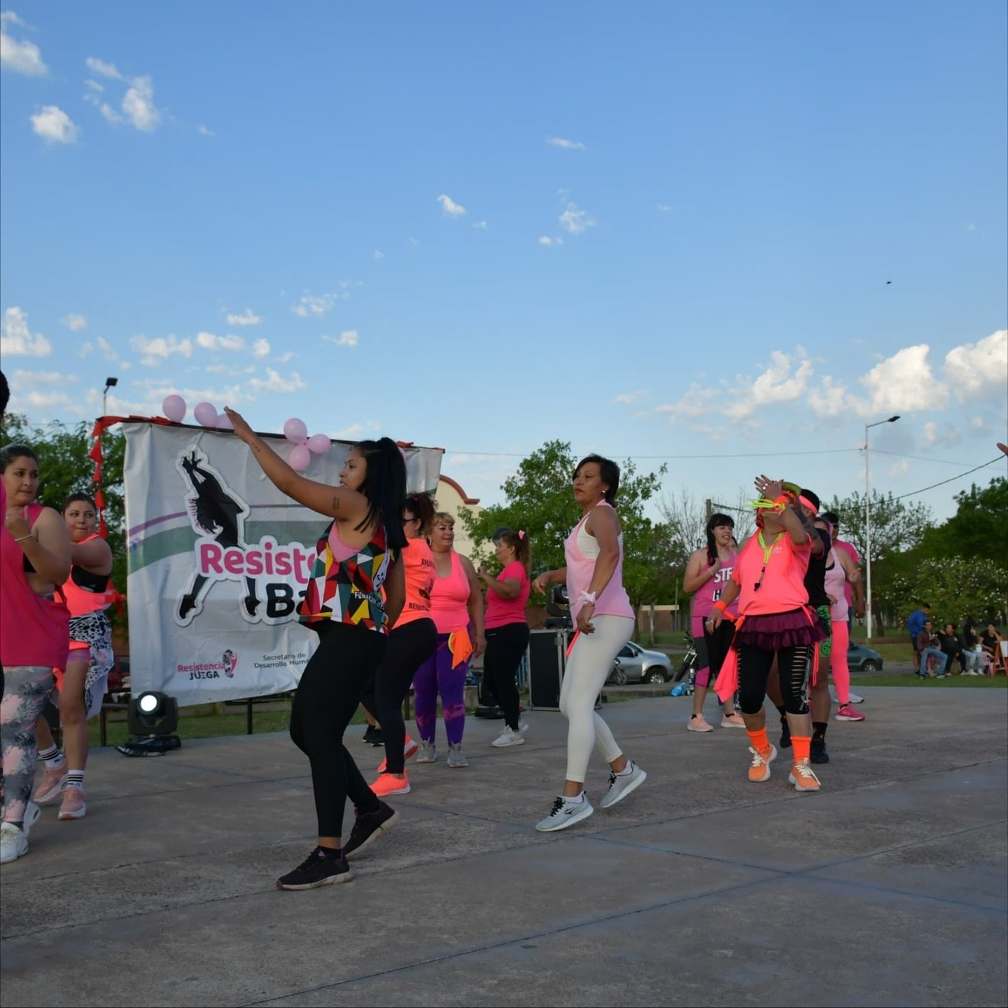 La Plaza Paseo Sur fue escenario de una exitosa master class de zumba con la participación de instructores nacionales, en el marco del programa Resistencia Baila y del Mes Rosa, promoviendo la prevención del cáncer de mama 💗