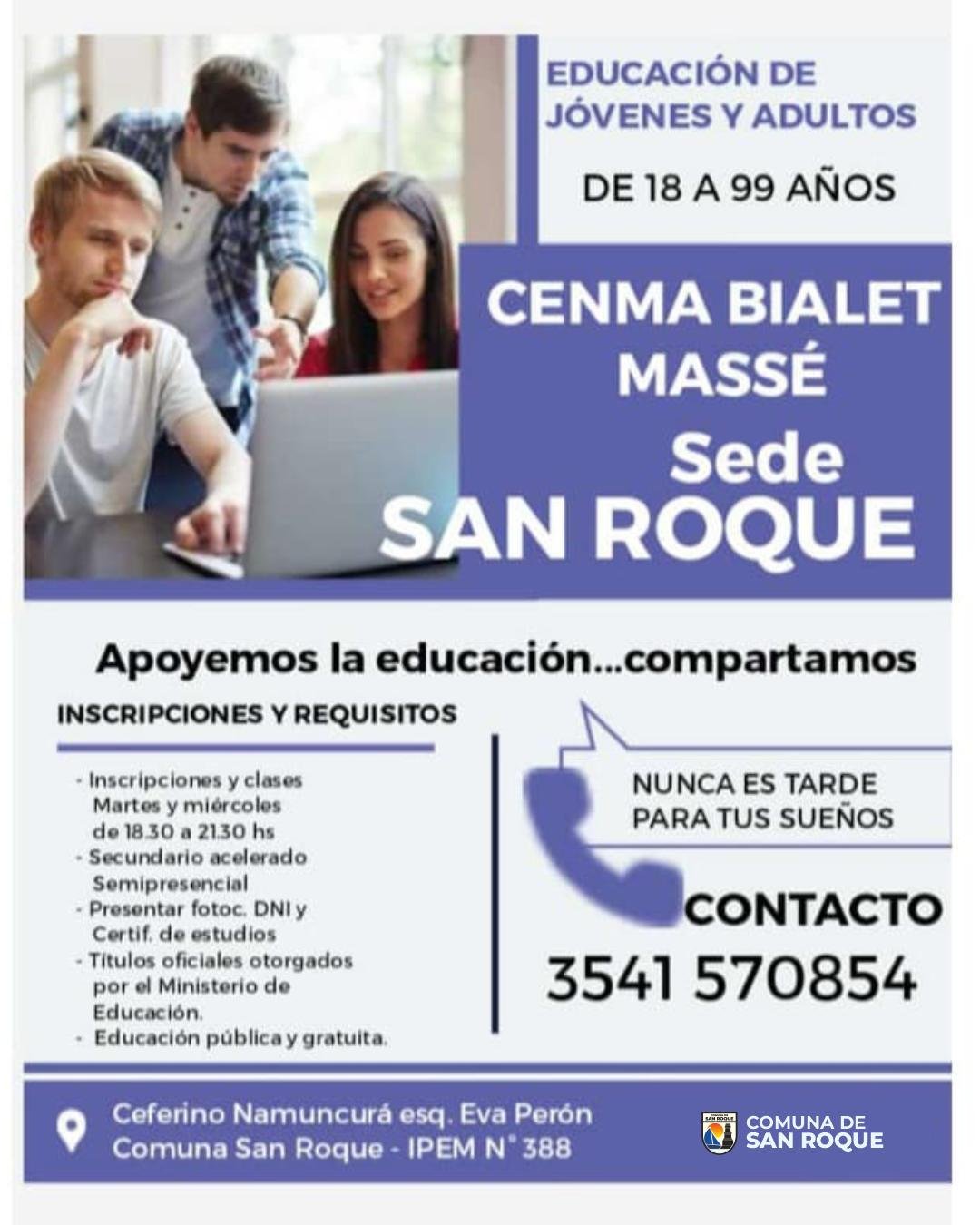 📚 Educación para Jóvenes y Adultos en San Roque – CENMA Bialet Massé (a partir de 18 años)