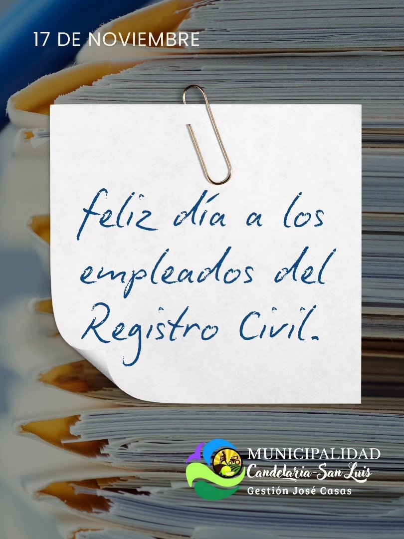 💫 El Intendente Municipal, Lic. José Ignacio Casas, saluda y felicita a los empleados del Registro Civil de Candelaria por su compromiso y dedicación al servicio de la comunidad.