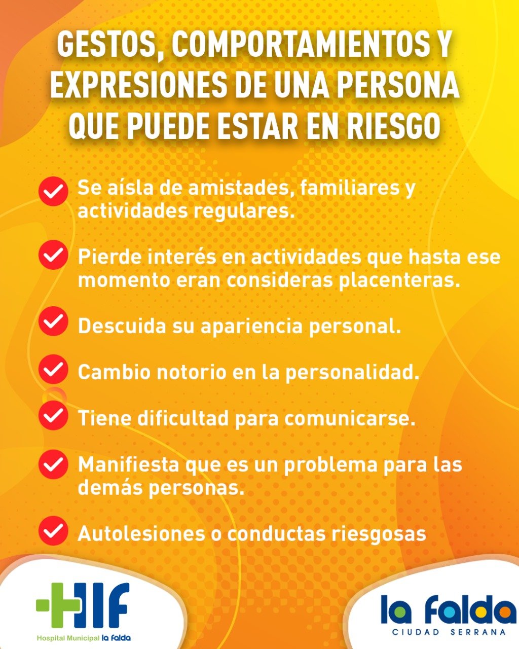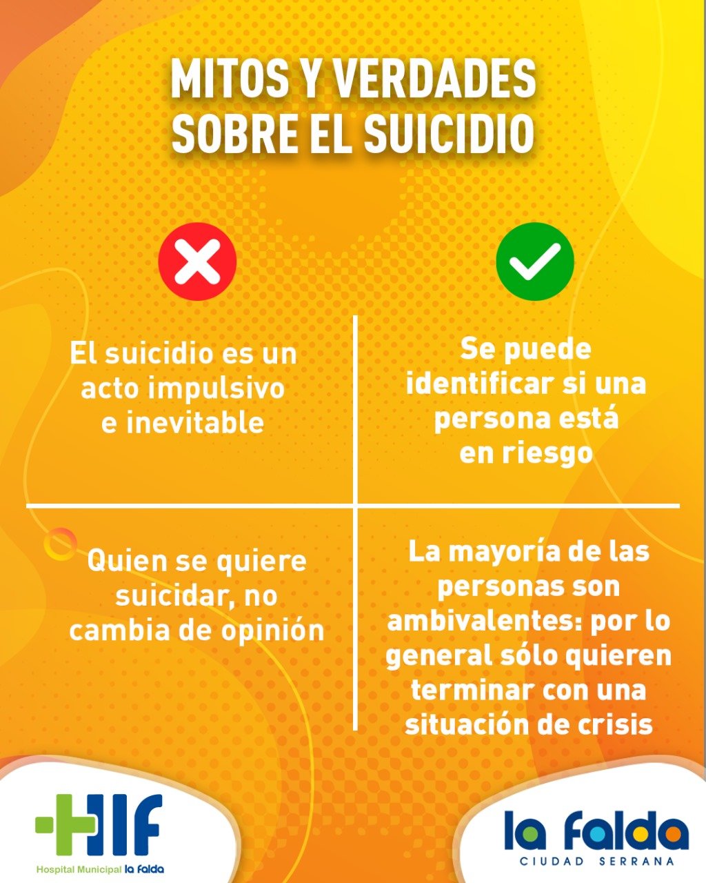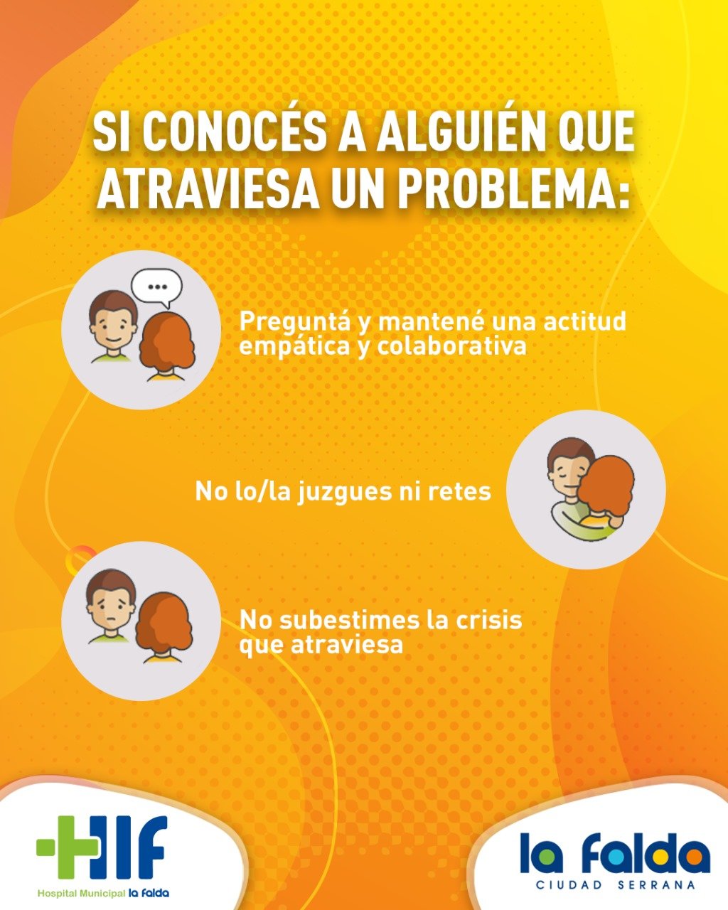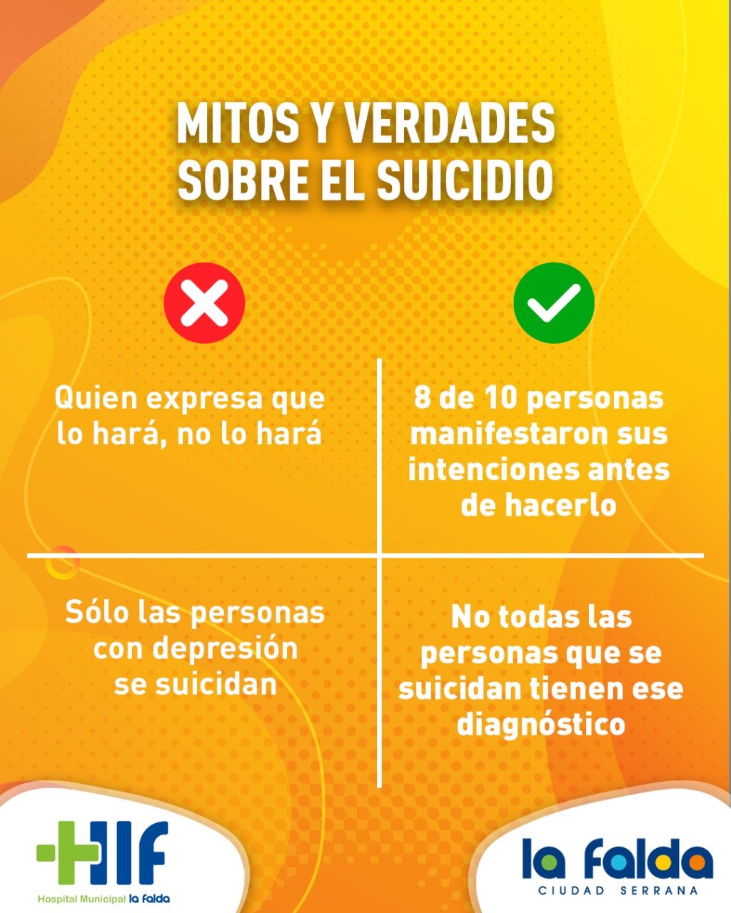 Desde la Municipalidad de La Falda, compartimos información relevante sobre el tema, y recordamos a la comunidad que nuestro Hospital cuenta con el servicio de psicología al que cualquier persona, sin importar edad, sexo o situación, puede acudir.