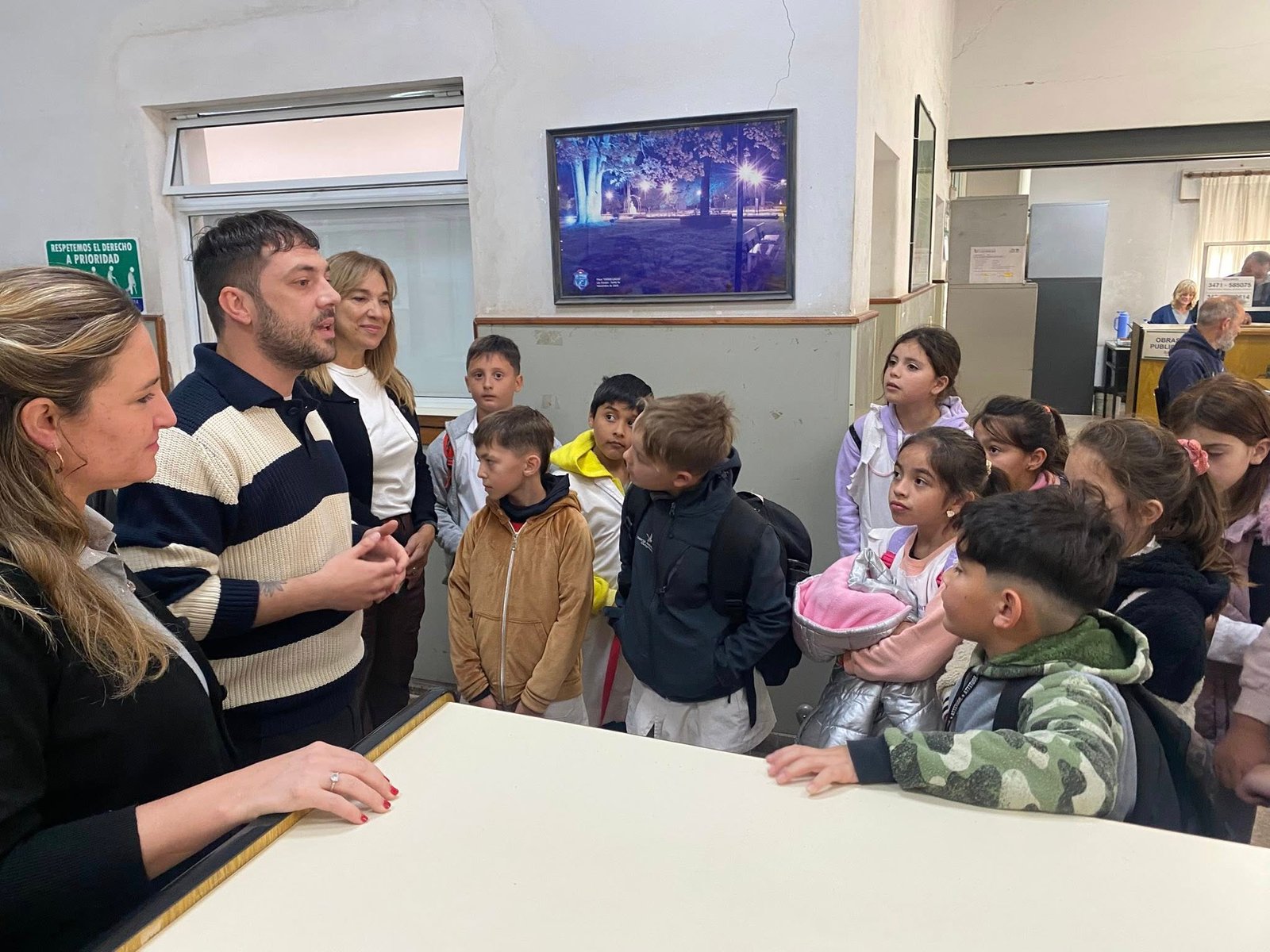 🙌El intendente @horaciocompagnucci recibió en el municipio a los alumnos y alumnas de 3er grado A y B de la Escuela N° 1232 Bandera Argentina.