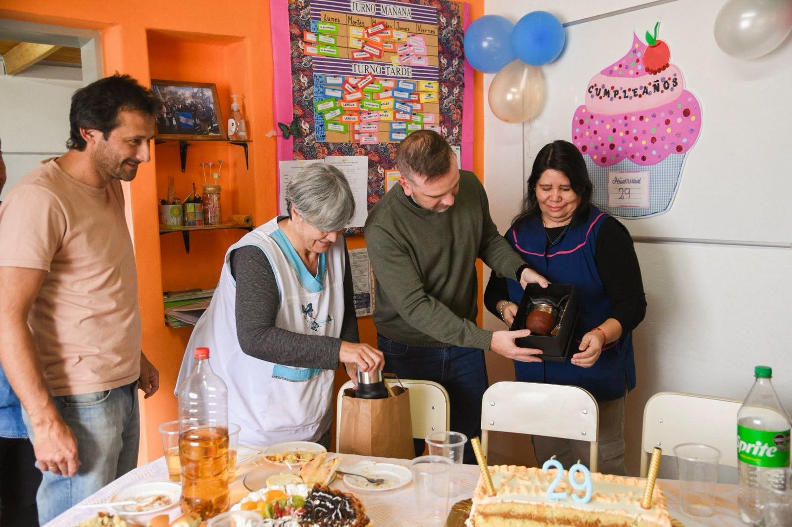 Las autoridades municipales fueron recibidas por la Directora de la Institución Alba Battistina y la comunidad educativa de la institución que celebró con un breve acto, palabras alusivas a la fecha y el corte tradicional de la torta.