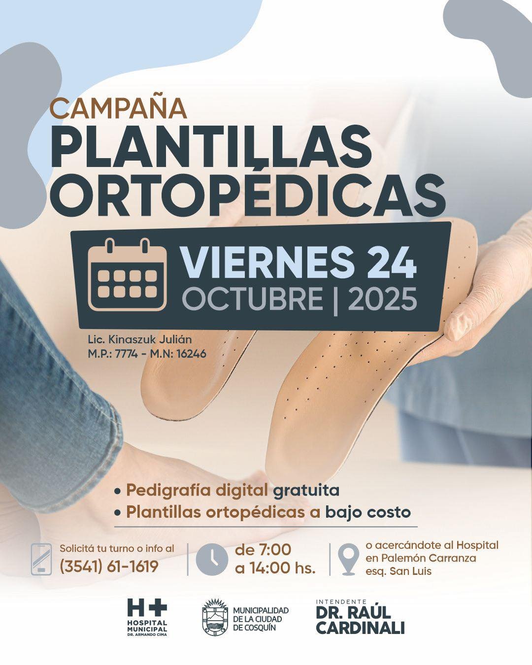 El viernes 24 de octubre llega la Campaña de Plantillas Ortopédicas al Hospital Municipal Dr. Armando Cima.