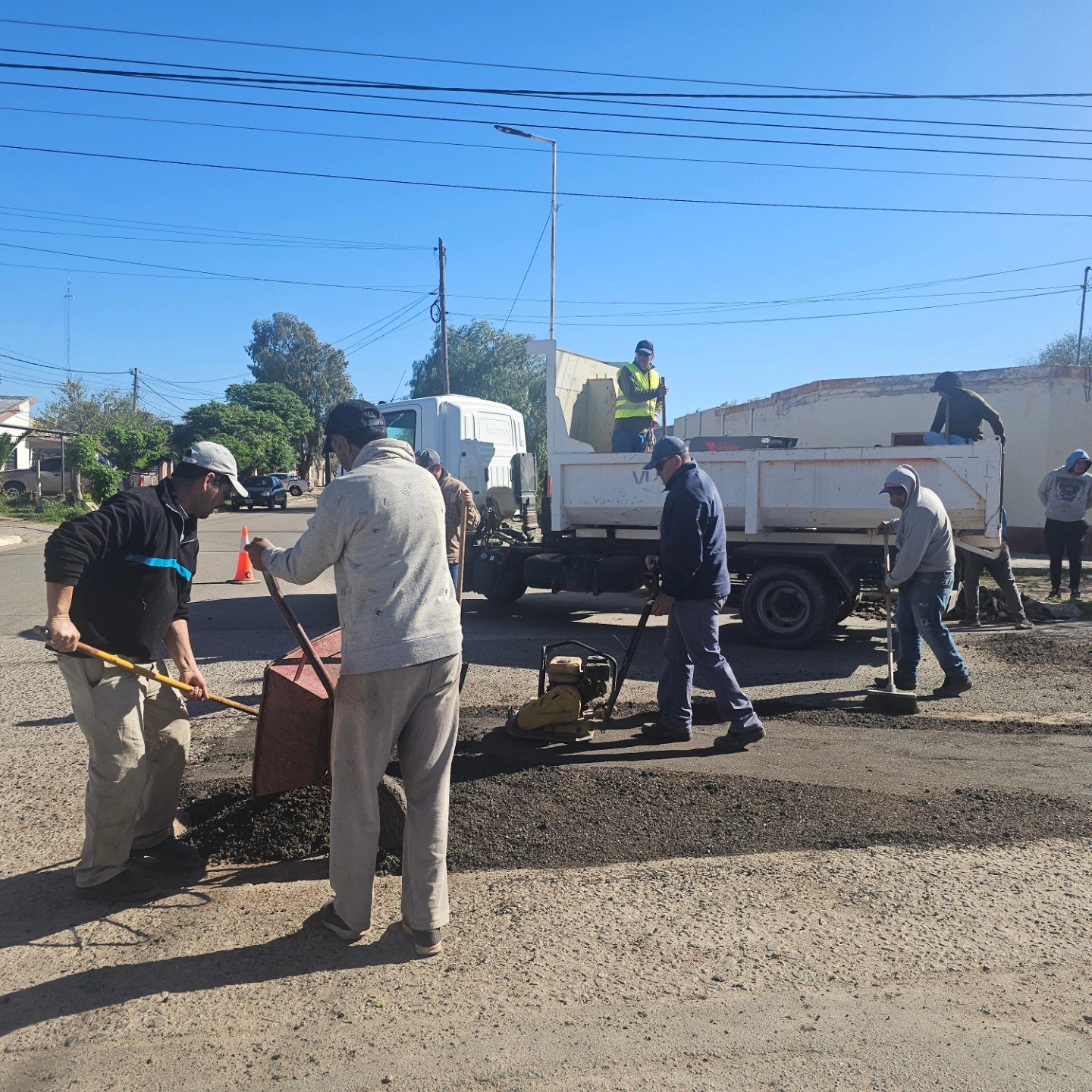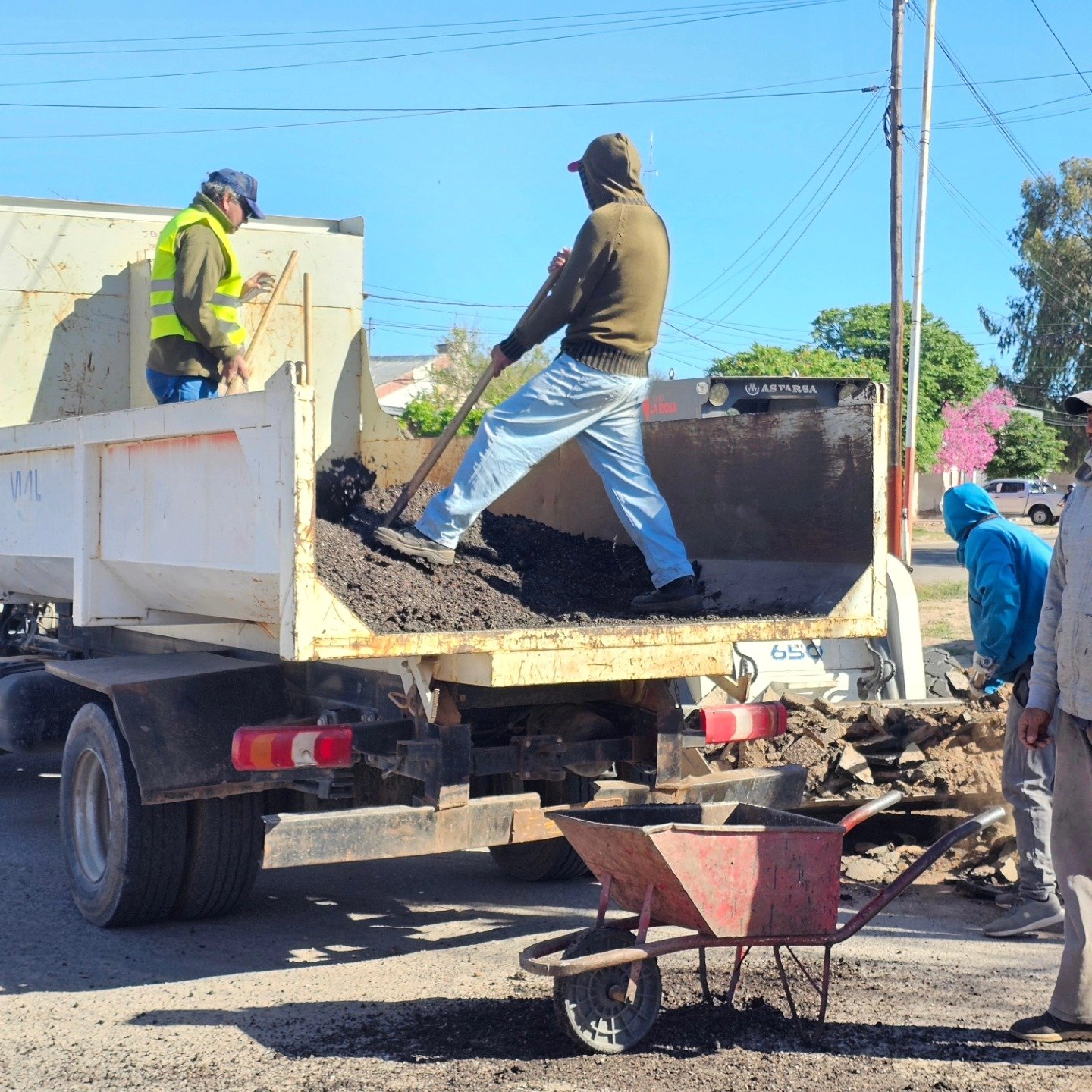 Con más de quince (15) toneladas de mezcla asfáltica en frío, los trabajos se llevaron a cabo sobre Av. 9 de Julio, Av. Pelagio B. Luna y calle Malvinas Argentinas.