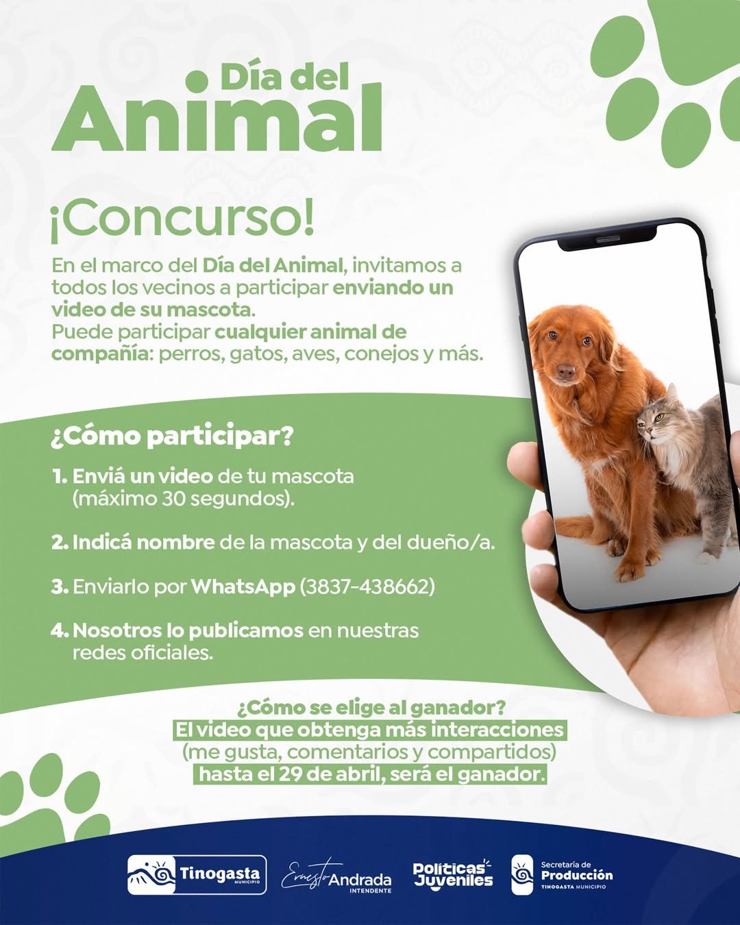 📅 En el marco del Día del Animal, invitamos a todos los vecinos a participar enviando un video de su mascota.