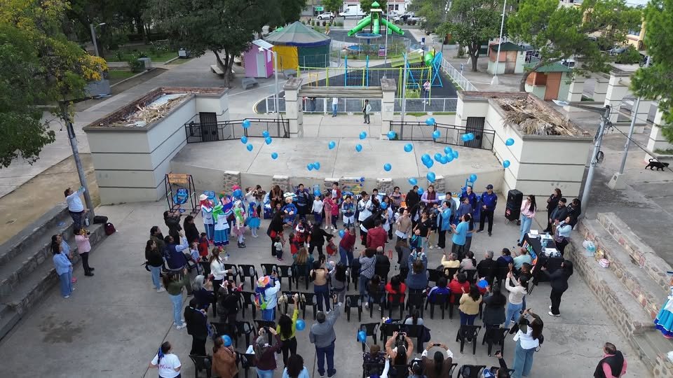 Desde el aire, nuestro dron captó un momento muy especial: la suelta de globos azules, símbolo de acompañamiento, respeto y compromiso con las personas con autismo y sus familias.