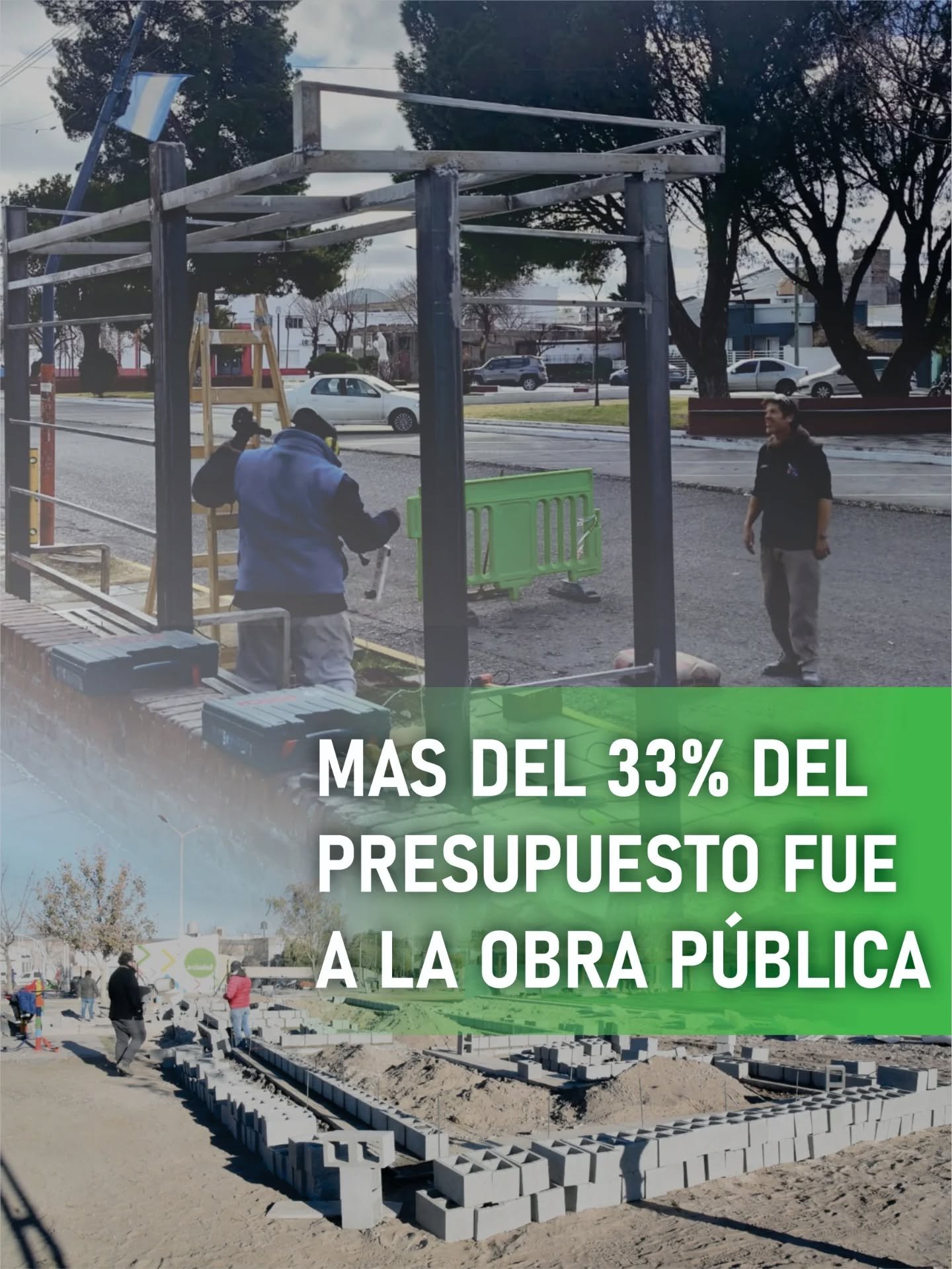 Más del 33% del presupuesto fue destinado a obras, con inversiones sostenidas en infraestructura, espacios públicos y equipamiento municipal.