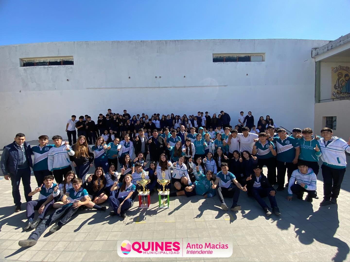✨ En la mañana de hoy, nuestra intendente Anto Macias, junto a sus secretarios, hizo entrega de los trofeos a los flamantes campeones de la Semana Estudiantil 2025, tras el empate histórico de puntos anunciado tras el fogón estudiantil del día viernes pasado.👏👏👏