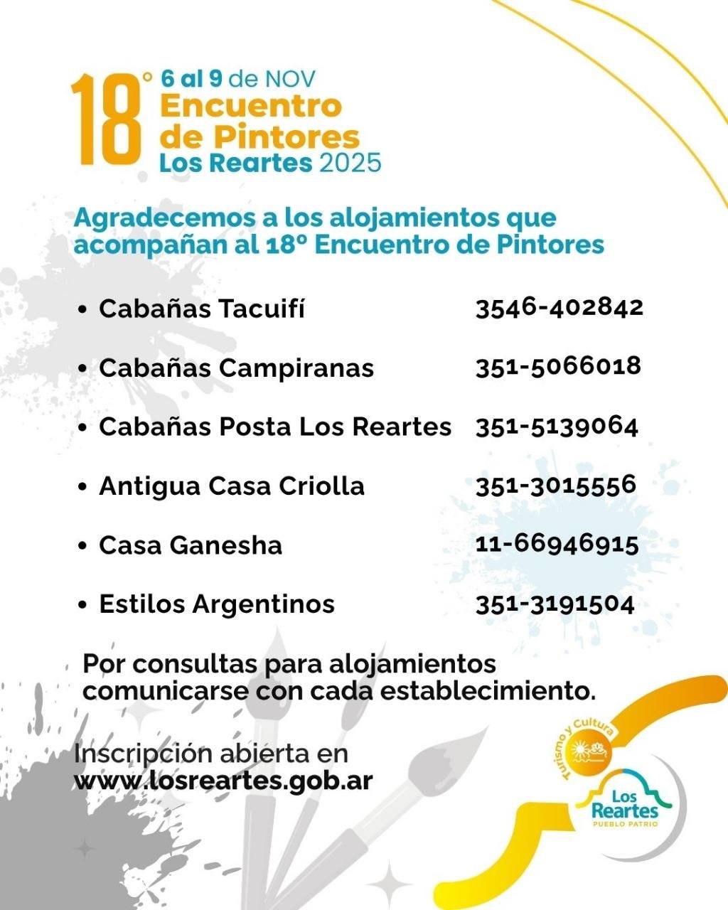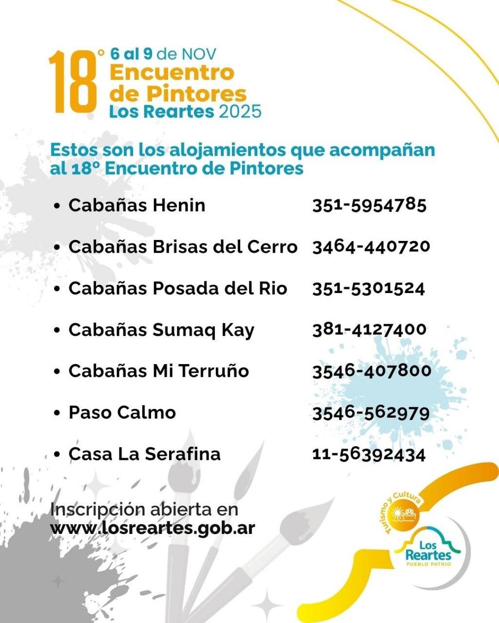 La Dirección de Turismo y Cultura recuerda que siguen abiertas las inscripciones para participar del 18° Encuentro de Pintores Los Reartes 2025.
