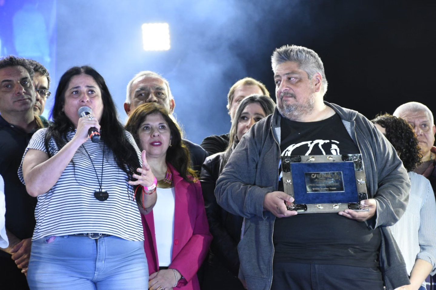 💙 Este año fueron distinguidos la artista tucumana Adriana Tula, por su trayectoria y compromiso con nuestra música, y Adrián y Maby Sosa, sobrinos de Mercedes Sosa, en homenaje a la “Negra” al cumplirse 90 años de su natalicio.
