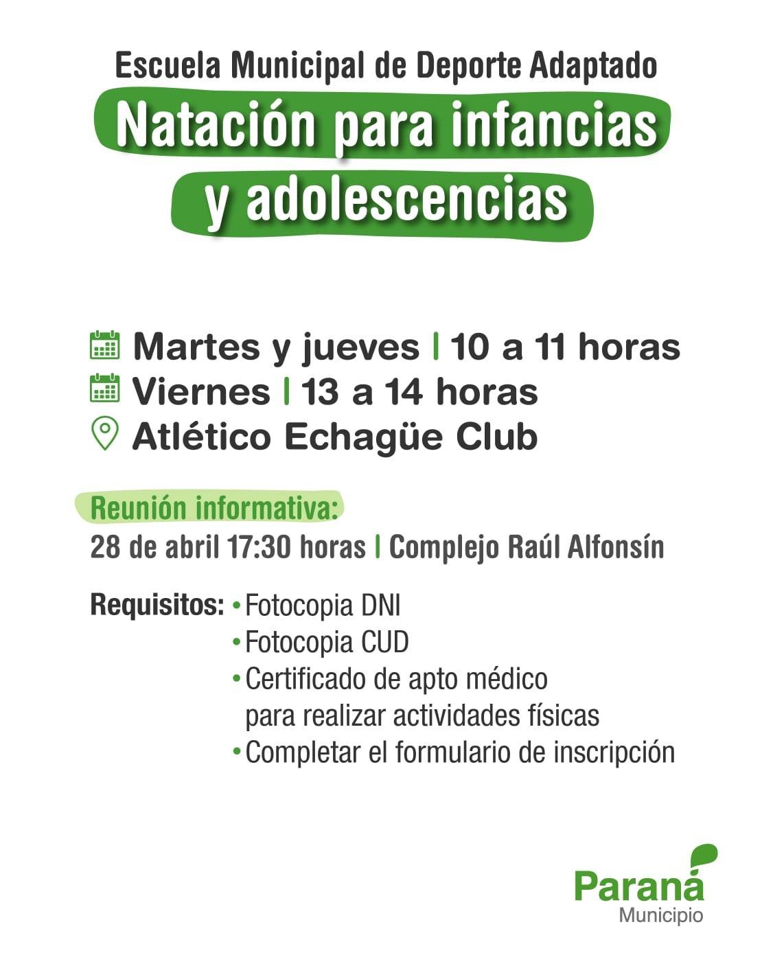 🏊 Será en el club Echagüe con Natación y actividades recreativas