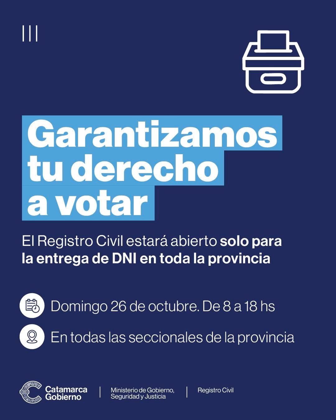 🗳️ Este domingo, el Registro Civil permanecerá abierto para que todos puedan retirar su DNI y ejercer su derecho a votar.